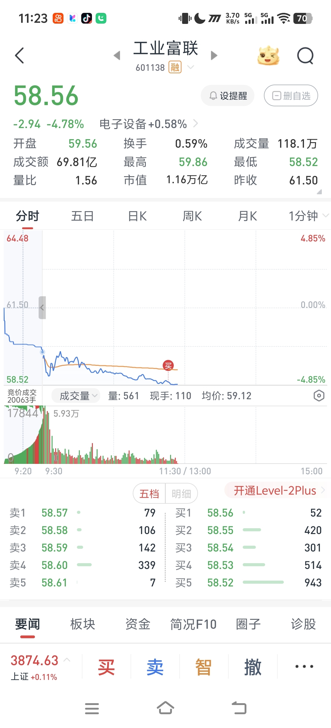 $工业富联(SH601138)$ 今天提前下班了,小仓位入了,继续下跌55在操作,现在小仓位操作,进可攻退可守。