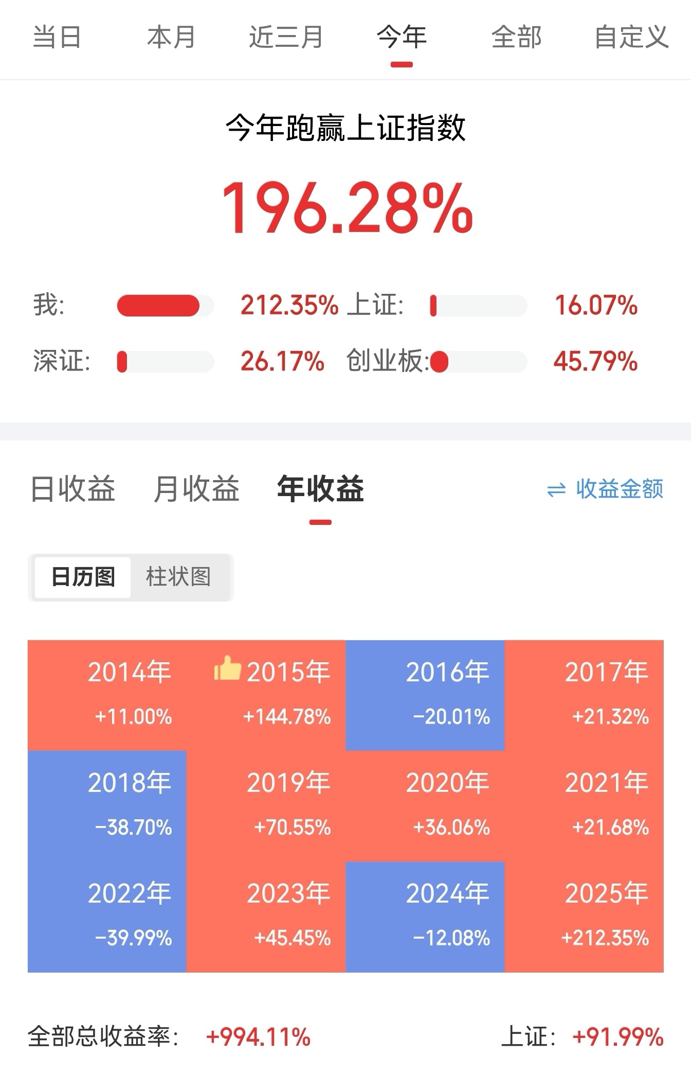 今天12月第三周结束,已进入我的,基本不看盘了。股市投资要有平常心,平常心是贯穿始终的平和心态。它不是消极躺平,而是面对暴涨时不贪念追高、面对暴跌时不恐慌割肉的理性自持;是既不被短期波动扰乱节奏,也不因他股涨幅乱了自己的投资逻辑。PCB龙头$胜宏科技(SZ300476)$ 今年涨幅依然大幅跑赢易中天,明年的业绩增速也不会低于光模块,有什么需要纠结的呢?保持平常心,才能在市场的潮起潮落中守住本心,以长期主义的视角筛选标的、把控仓位,最终在时间的复利中收获稳稳的收益。