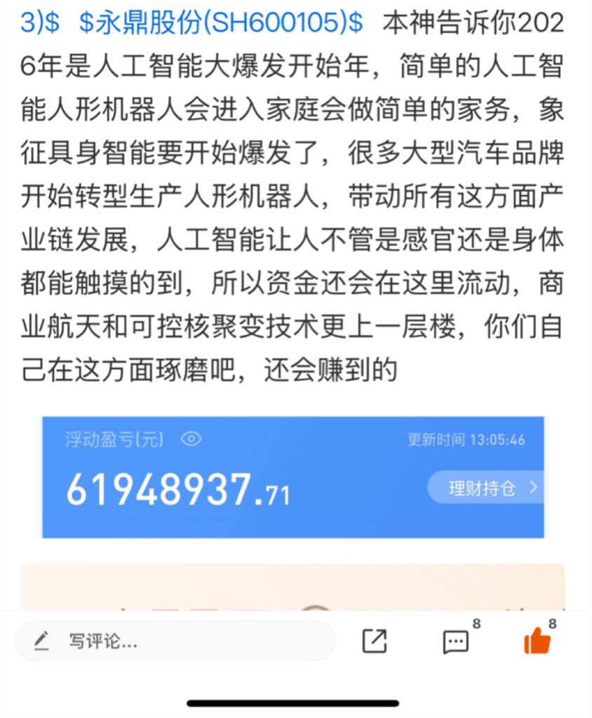 郑重声明:用户在财富号/股吧/博客等社区发表的所有信息(包括但不限于文字、视频、音频、数据及图表)仅代表个人观点,与本网站立场无关,不对您构成任何投资建议,据此操作风险自担。请勿相信代客理财、免费荐股和炒股培训等宣传内容,远离非法证券活动。请勿添加发言用户的手机号码、公众号、微博、微信及QQ等信息,谨防上当受骗!