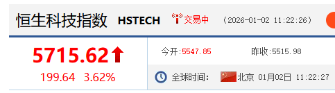 新年关键词暴涨:恒生科技指数涨3.6%,半导体暴涨3.8%