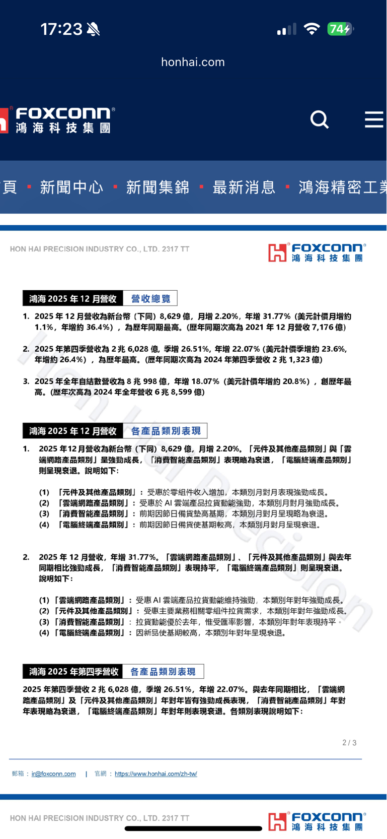 $工业富联(SH601138)$ 来吧 各位股东想看的鸿海业绩 爆