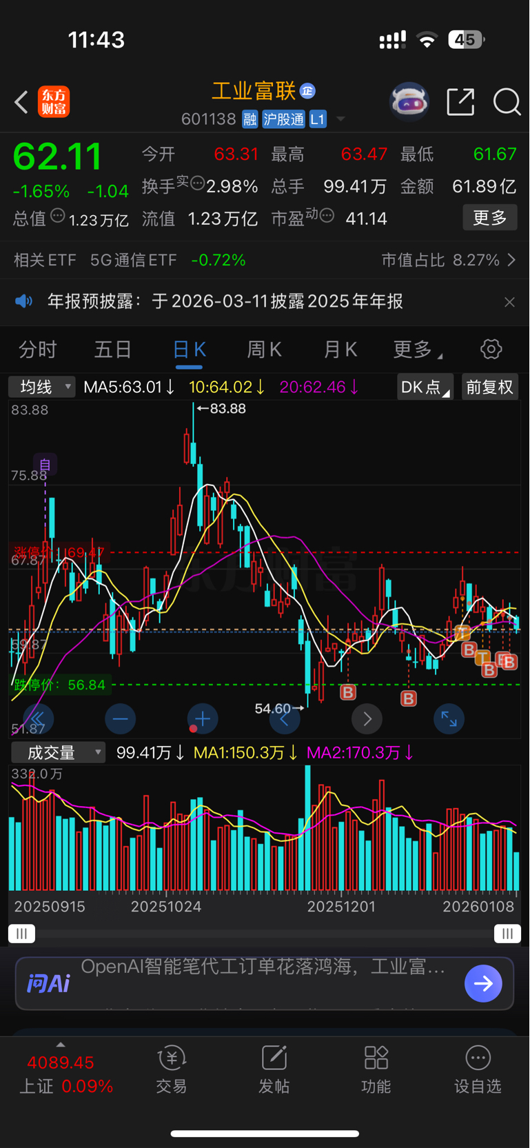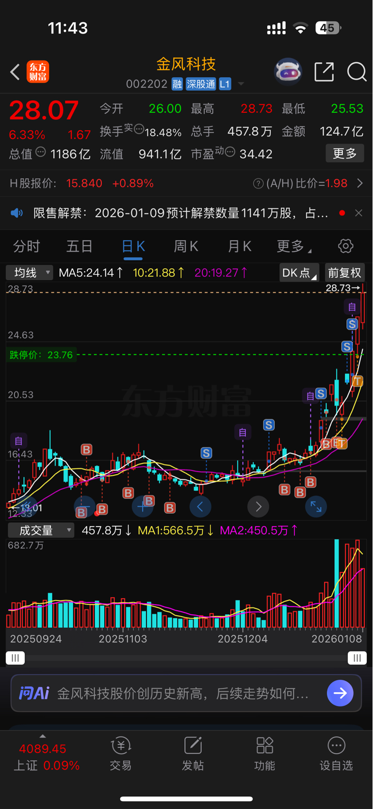 对自己无语了,把金风科技大牛股一直卖,卖了补到低位的富士康,结果金风4个涨停了。