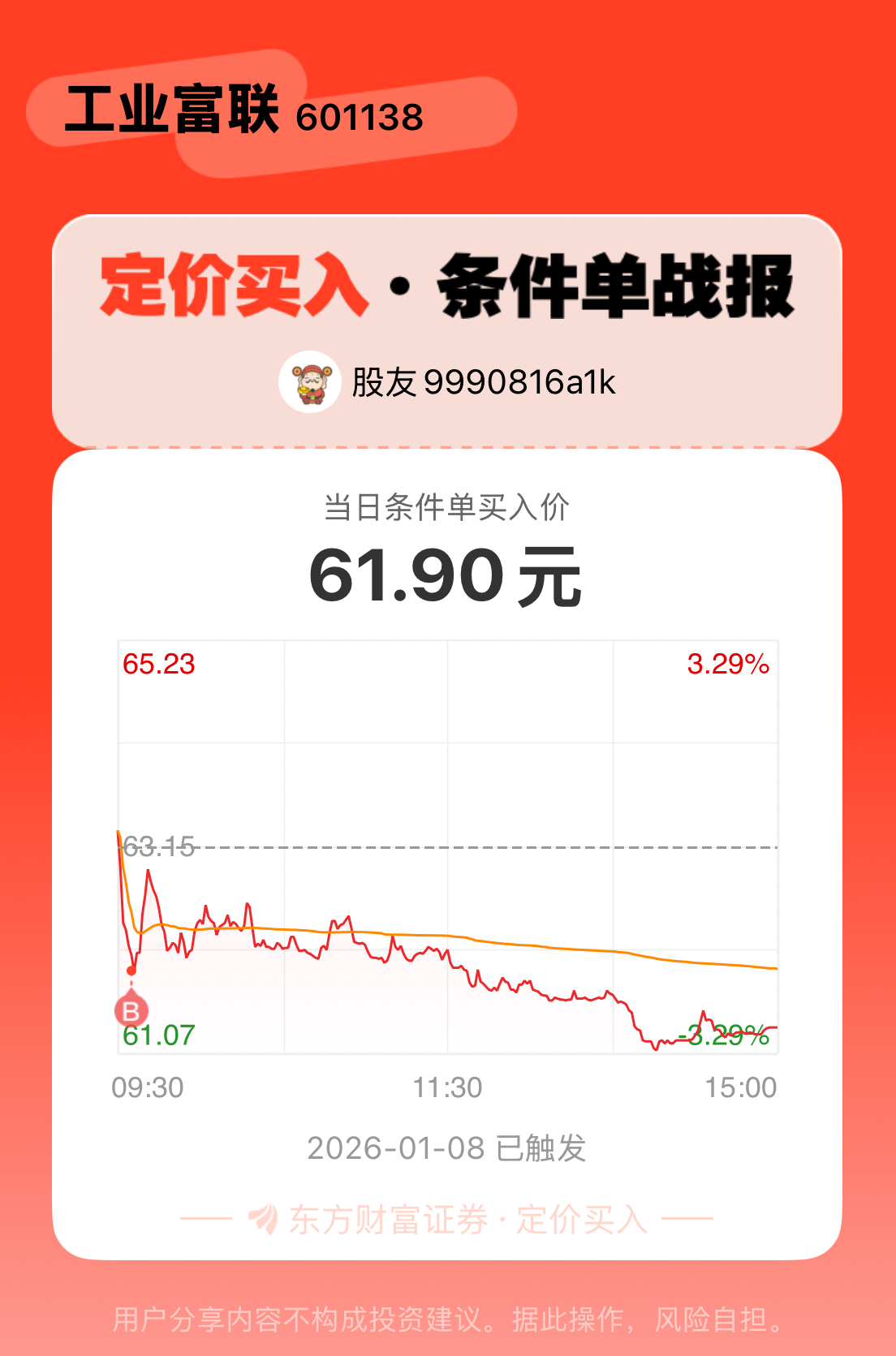#条件单交流# #定价买入晒单# 我方派出一个定价买入条件单,立时就征服了$工业富联(SH601138)$