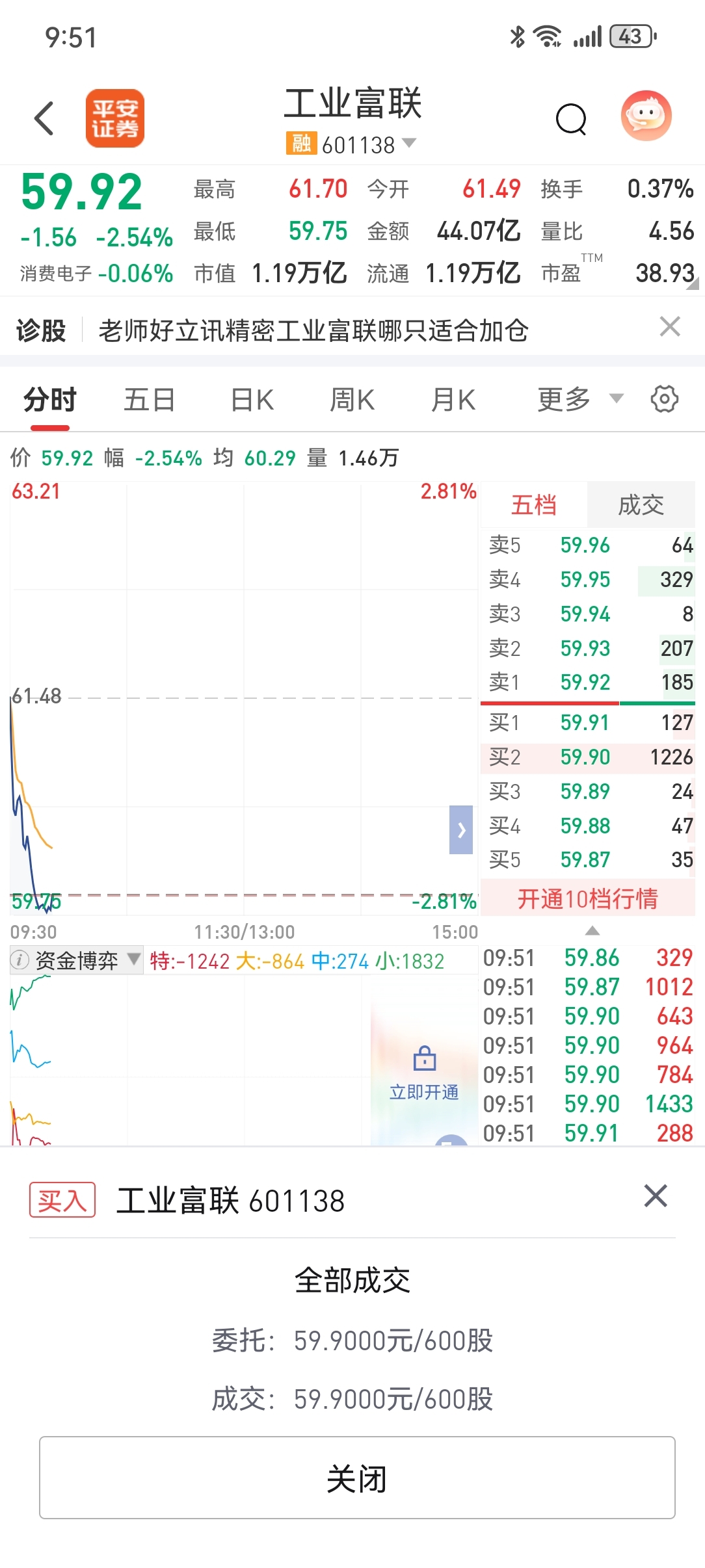 $工业富联(SH601138)$ 翻红,T出来