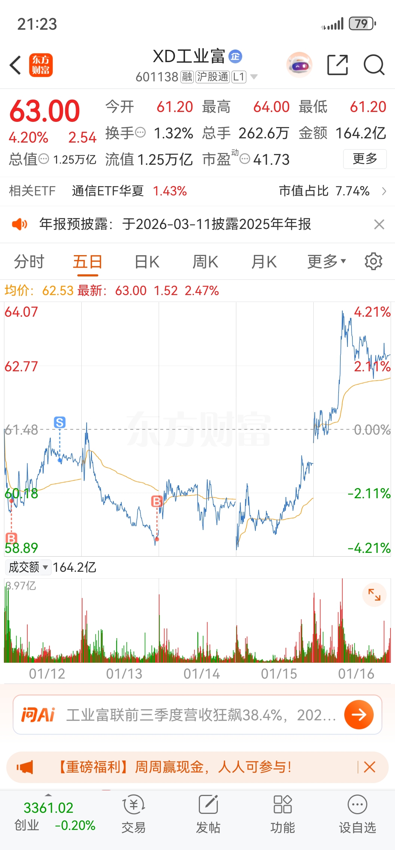 $XD工业富(SH601138)$ 半仓底 半仓 T 不贪 不追高 本周圆满结束#炒股日记#
