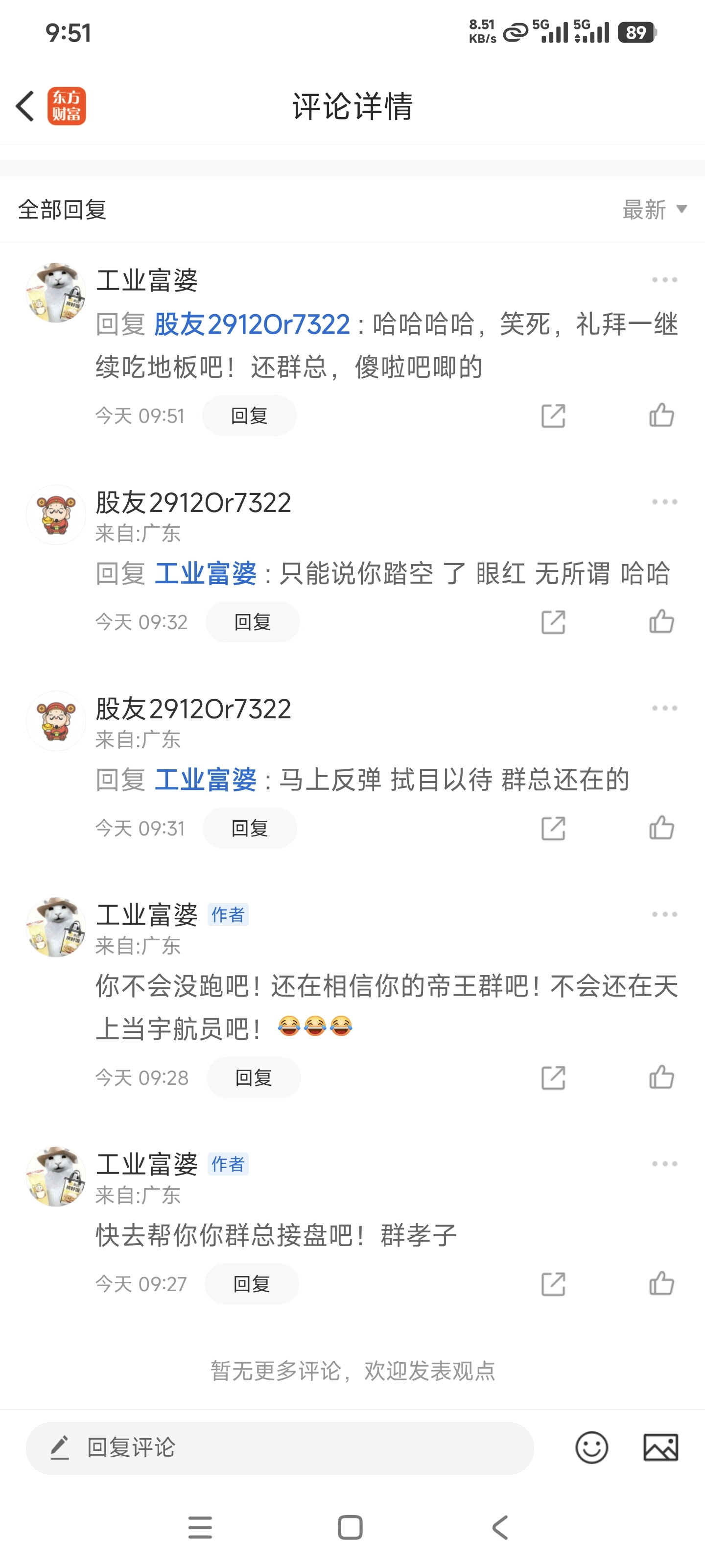 温馨提示: 1.根据《证券法》规定,禁止编造、传播虚假信息或者误导性信息,扰乱证券市场;2.用户在本社区发表的所有资料、言论等仅代表个人观点,与本网站立场无关,不对您构成任何投资建议。用户应基于自己的独立判断,自行决定证券投资并承担相应风险。《东方财富社区管理规定》