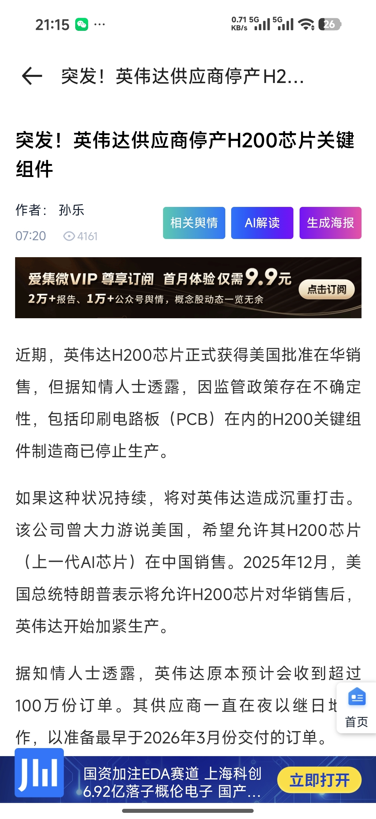 最新消息,不知真假。我先说我不知道真假,其次我也买了工业富联。不希望是真的。H2