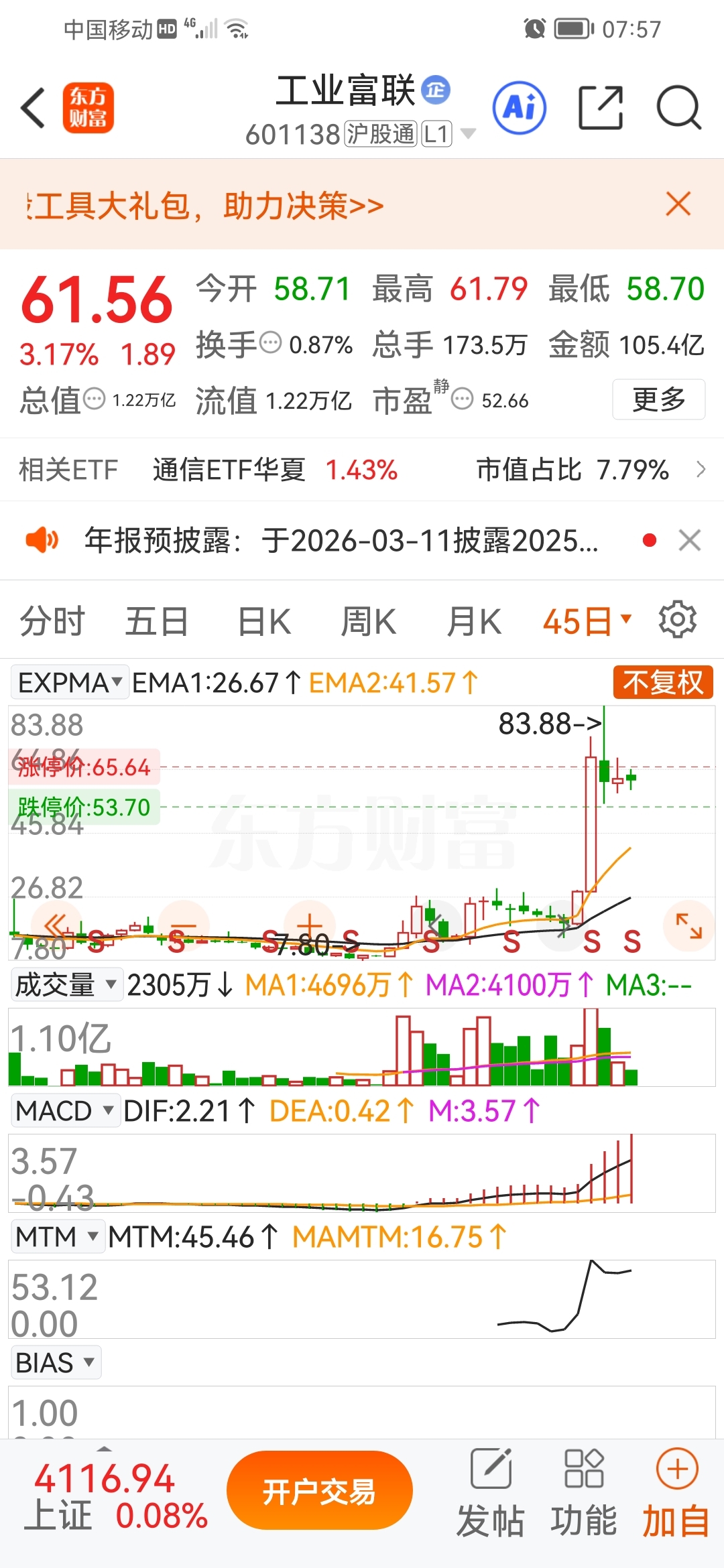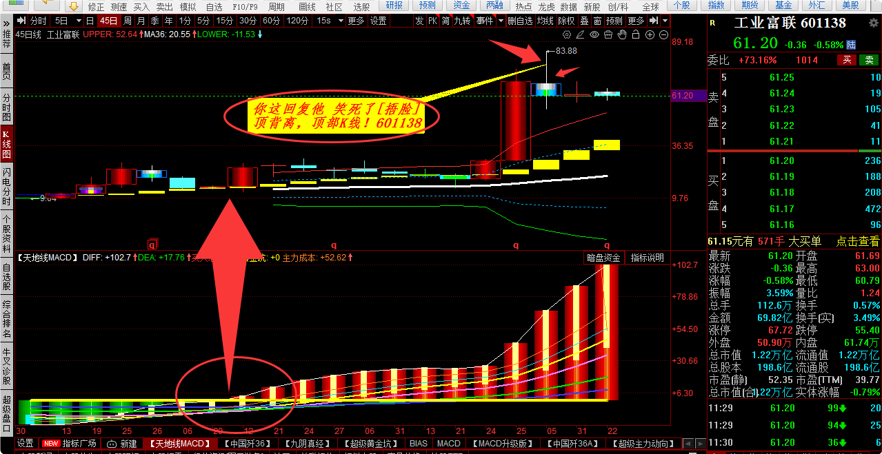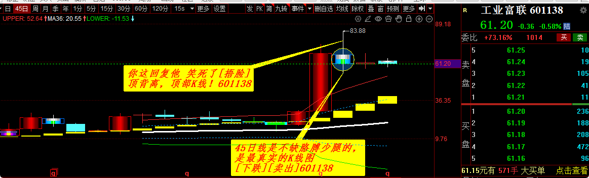 $工业富联(SH601138)$ #复盘记录# 顶背离,顶部K线!