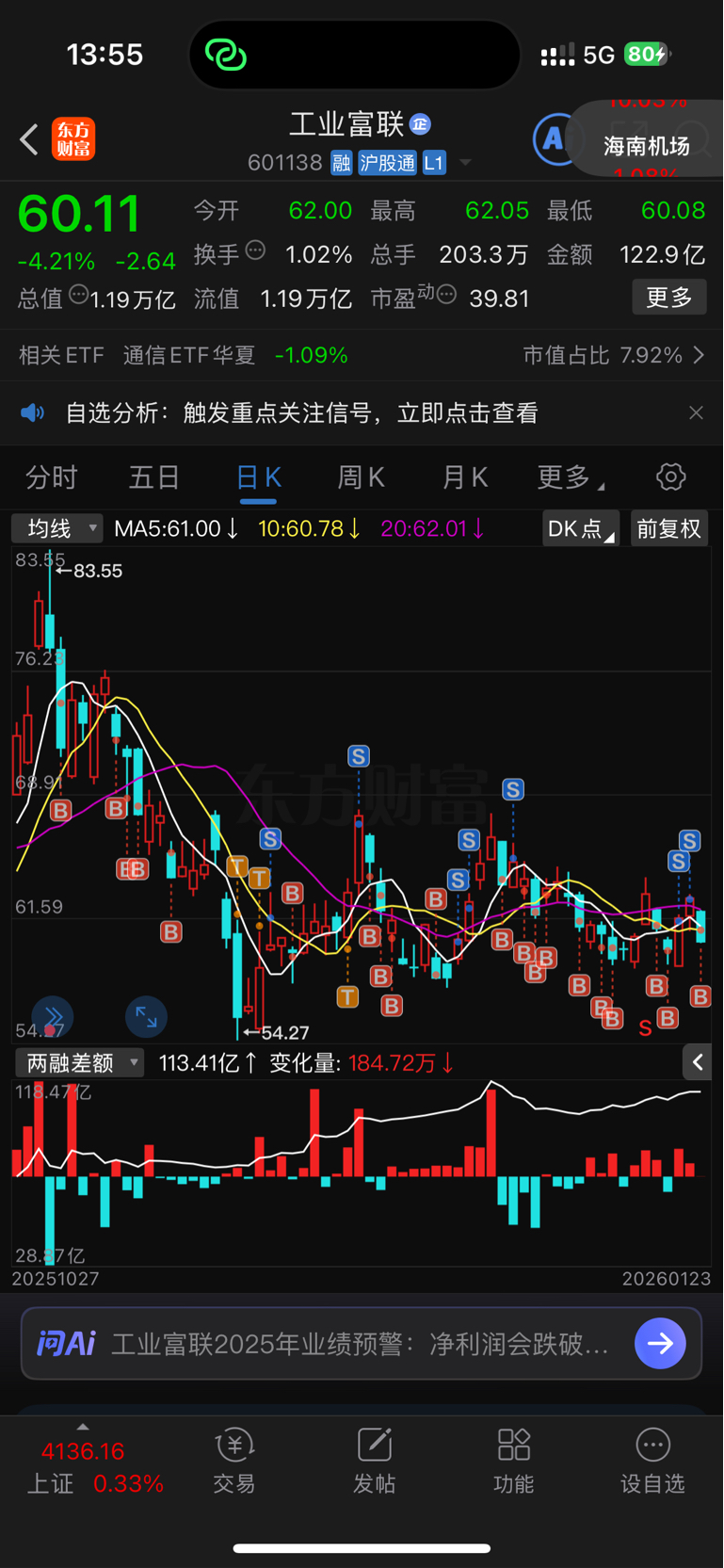$工业富联(SH601138)$ 自从买了就一直往下跌