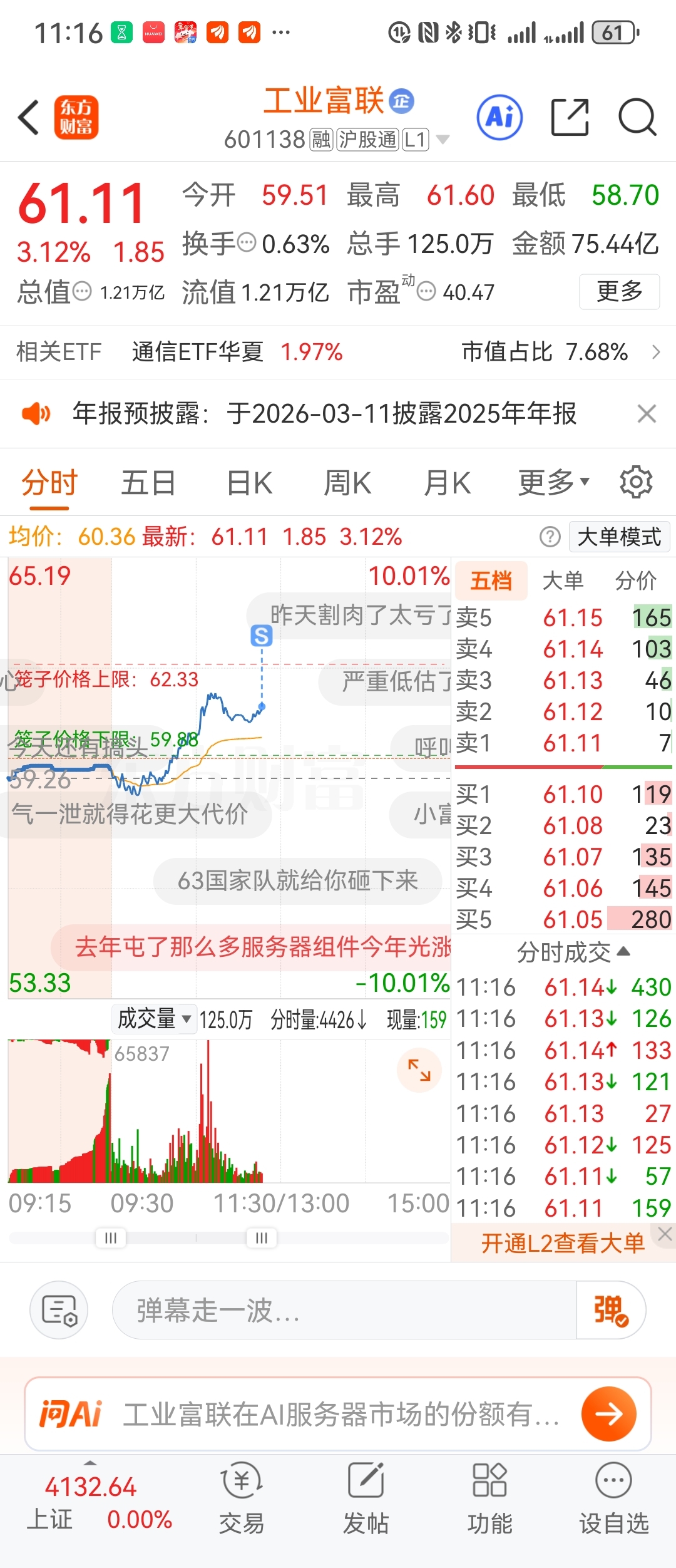 $工业富联(SH601138)$ 压单被吃了?那我继续压,回调60以下再进
