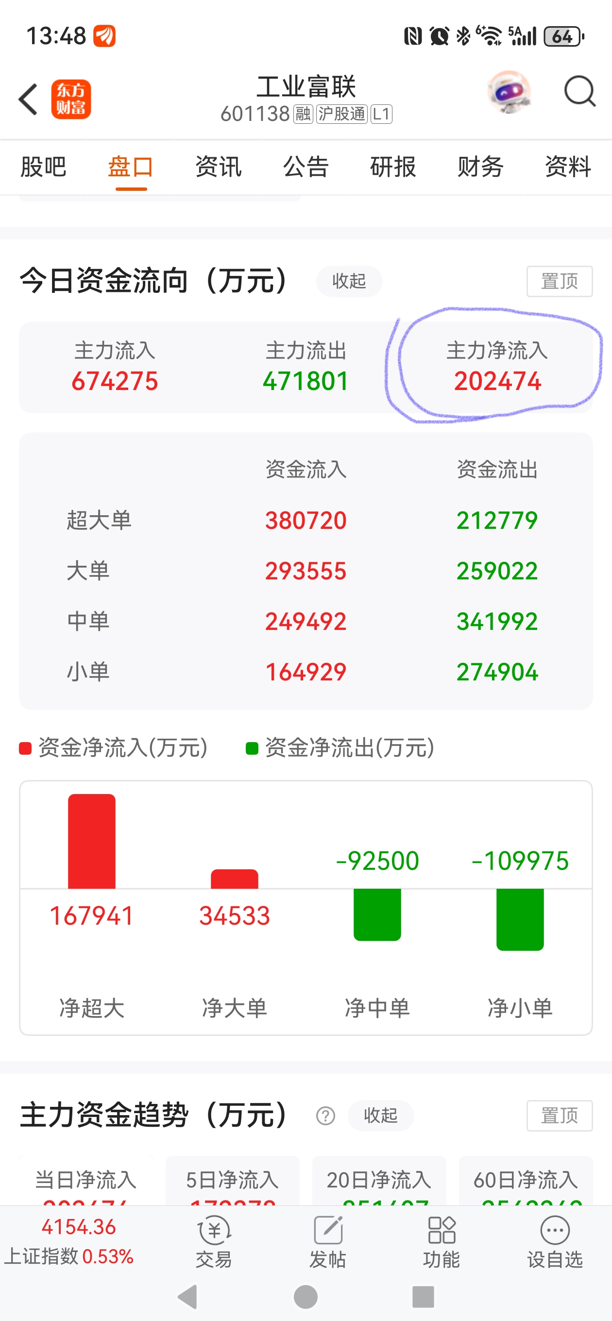 今日净流入20亿元,之前是连续流出的