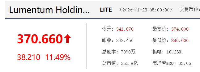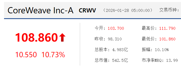 数据中心CRWV两天大幅上涨17%,光模块LITE暴涨11%