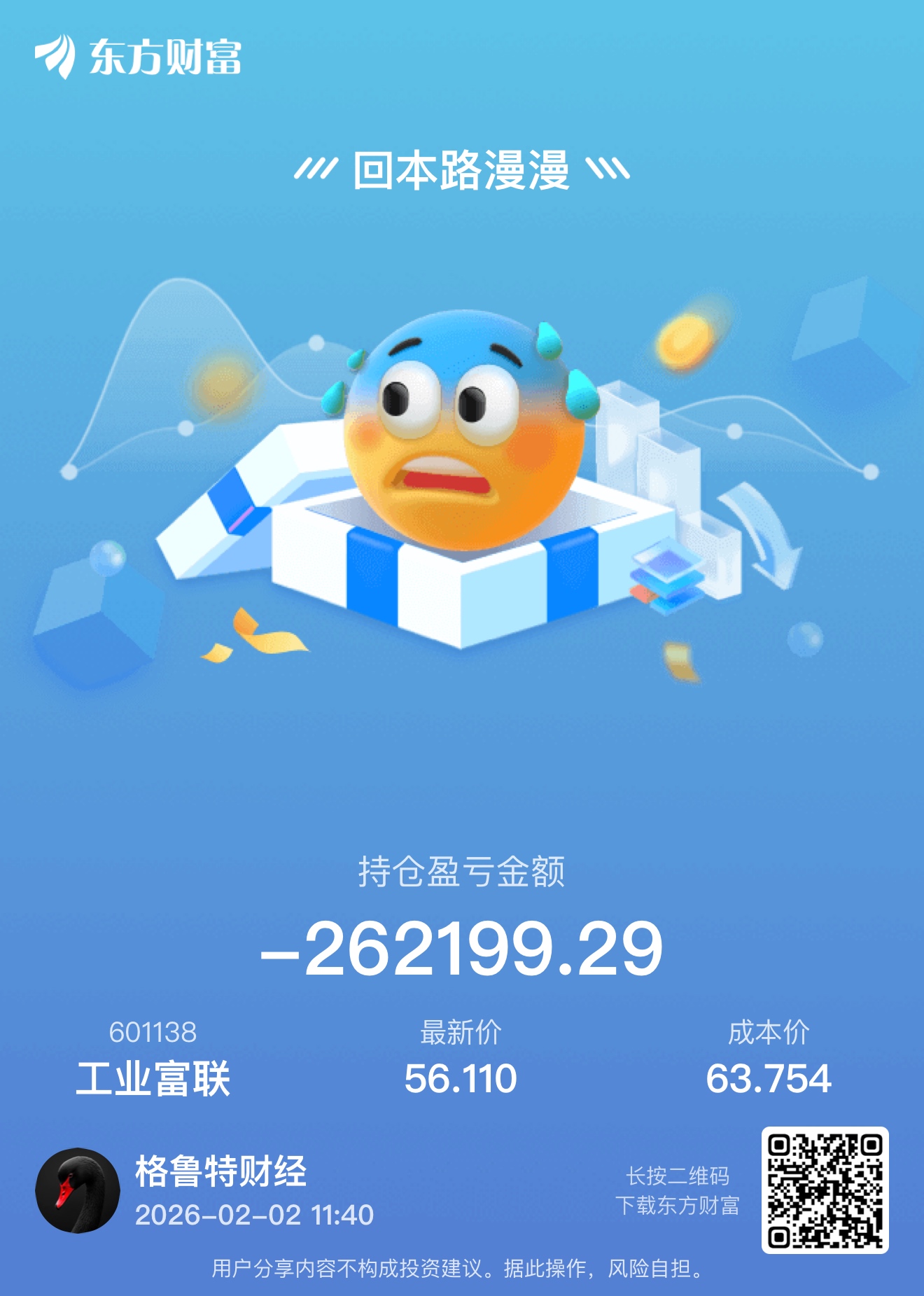 温馨提示: 1.根据《证券法》规定,禁止编造、传播虚假信息或者误导性信息,扰乱证券市场;2.用户在本社区发表的所有资料、言论等仅代表个人观点,与本网站立场无关,不对您构成任何投资建议。用户应基于自己的独立判断,自行决定证券投资并承担相应风险。《东方财富社区管理规定》