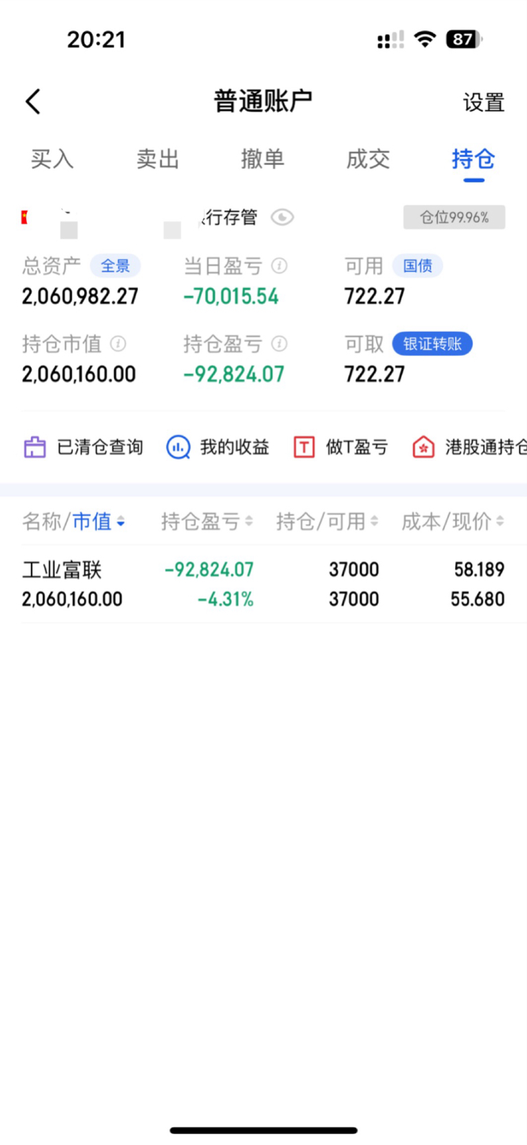 再高的胜率也抵挡不住下跌的吞噬、明天一个低开就要亏六位数了,继续调子弹希望持仓早