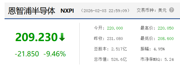 纳指下跌:恩智浦半导体下跌9%,甲骨文,美光,英伟达,高通大幅下跌