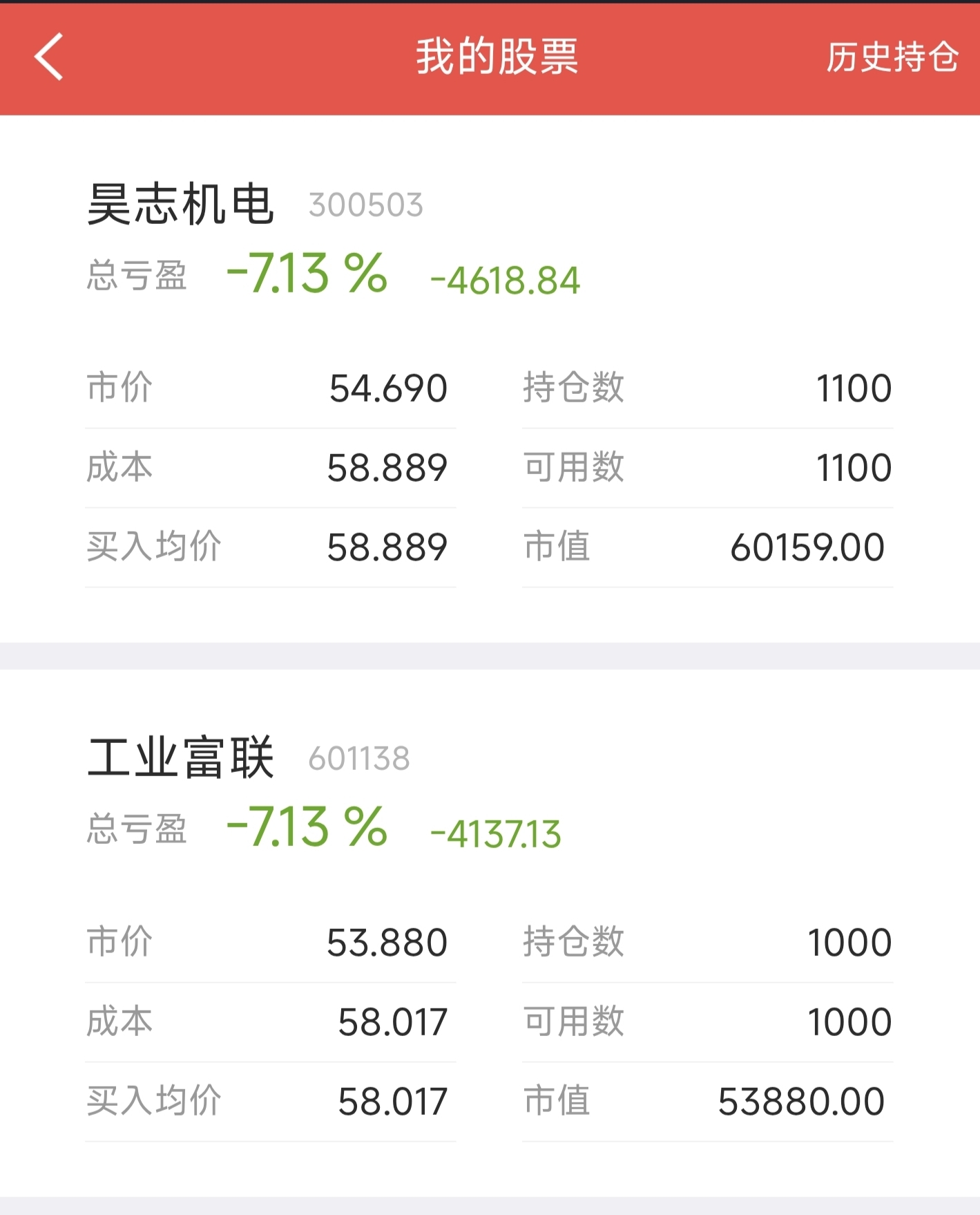 这俩难兄难弟我真是服了,买了以后就不停的跌,现在亏损点居然还同步了,能不能让我过