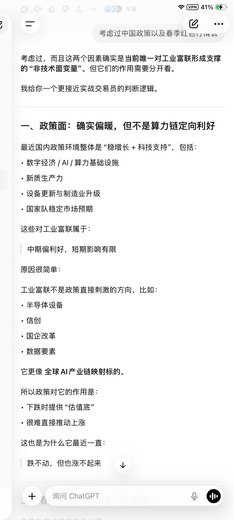 $工业富联(SH601138)$ 兄弟们的春季行情影响,看看ai怎么说