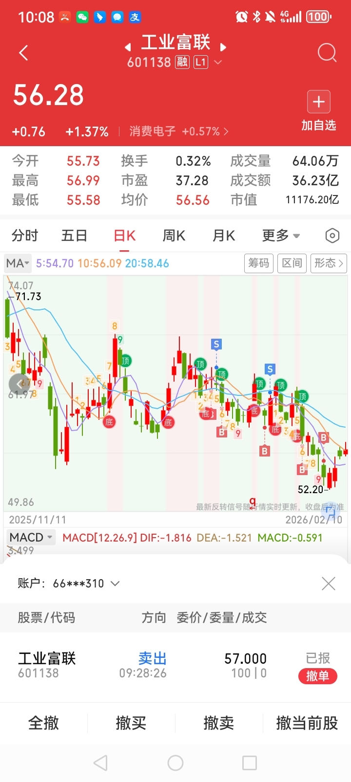 $工业富联(SH601138)$ 想卖一手换点钱过年居然没人要,56.99又下去了