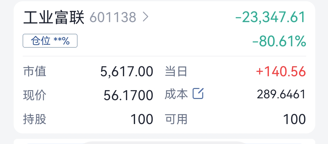 $工业富联(SH601138)$ 已割肉,剩100股爱咋咋地。