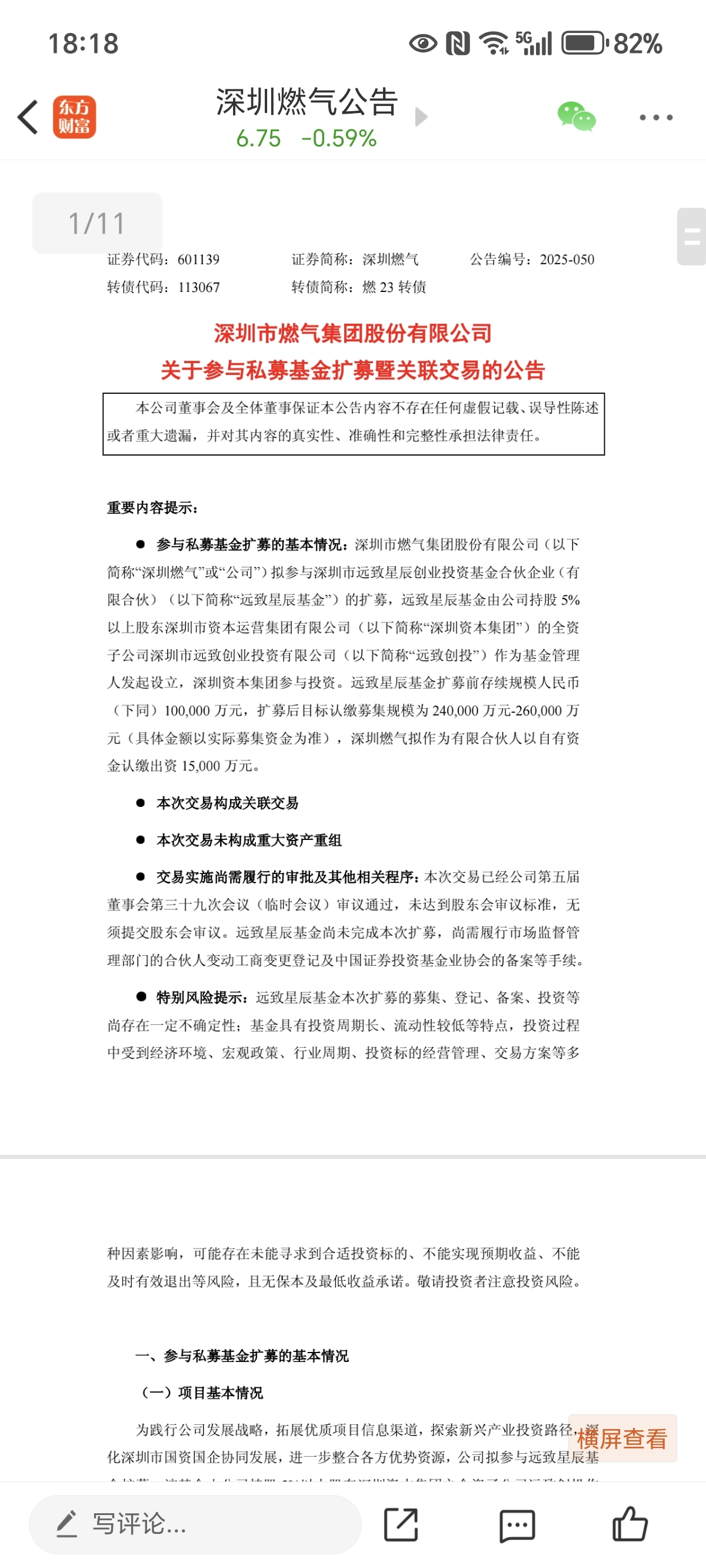 $深圳燃气(SH601139)$ 深圳燃气参与私募基金扩募,利好,明天妥妥的大阳了!