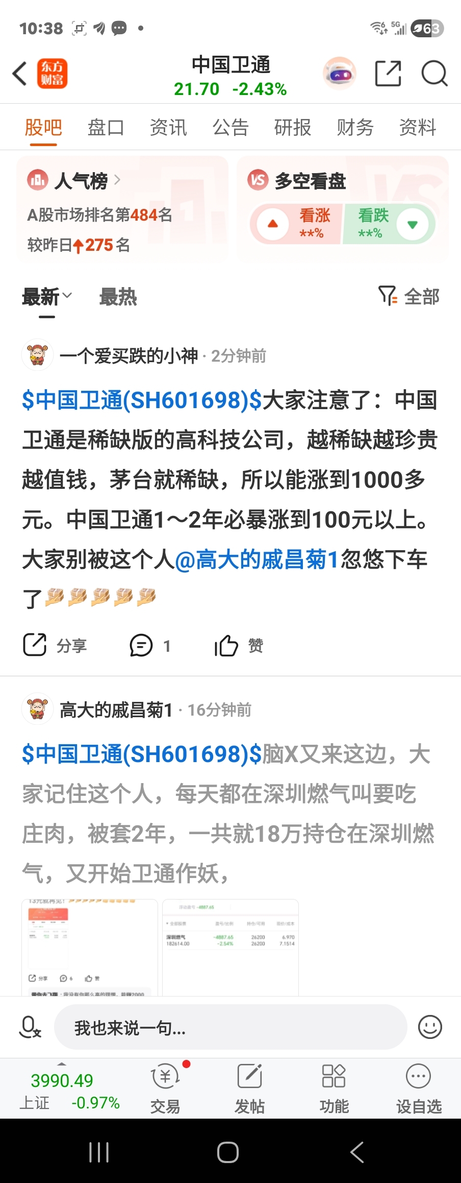 $深圳燃气(SH601139)$ 看小丑又在卫通作妖了,可怜的深圳全仓18万还没解套又开始作妖哈哈
