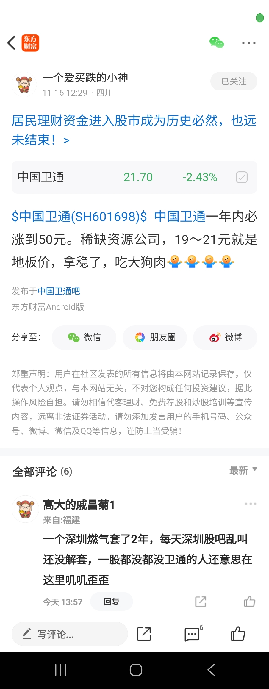 温馨提示: 1.根据《证券法》规定,禁止编造、传播虚假信息或者误导性信息,扰乱证券市场;2.用户在本社区发表的所有资料、言论等仅代表个人观点,与本网站立场无关,不对您构成任何投资建议。用户应基于自己的独立判断,自行决定证券投资并承担相应风险。《东方财富社区管理规定》