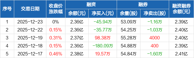 深圳燃气:融资净偿还45.94万元,融资余额2.36亿元(12-23)