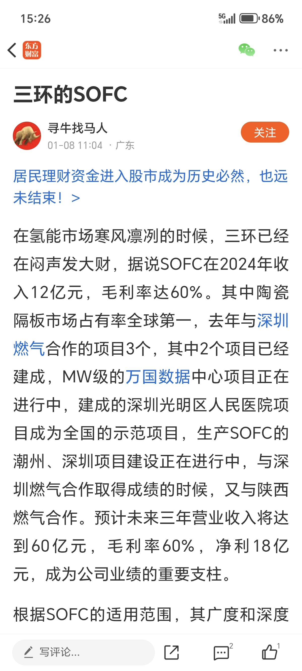 $深圳燃气(SH601139)$ 这个消息牛!(转载)三环的SOFC,与深燃合作的三个项目,二个已成。根据SOFC的适用范围,其广度和深度显示未来的市场极为庞大,三环有条件超越宁王!拿稳了,吃大肉到了!