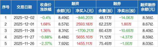 新城控股:融资净偿还846.2万元,融资余额8.49亿元(12-02)
