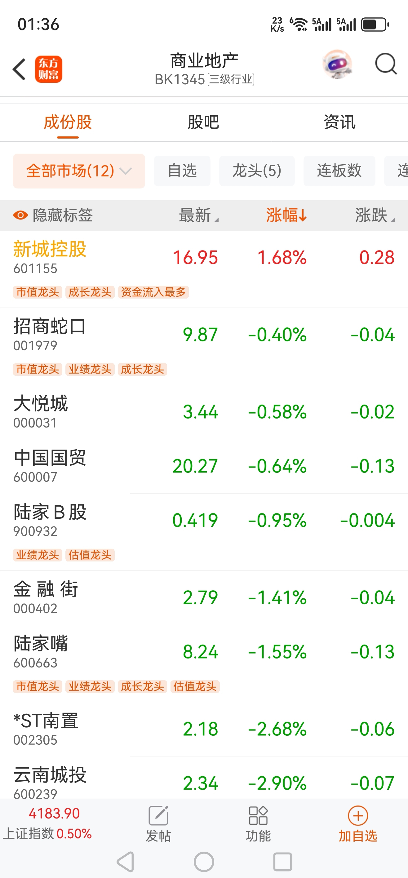 商业地产概念12个股票,包含两个st两个B股,剩下8个里面就新城规模还算可以