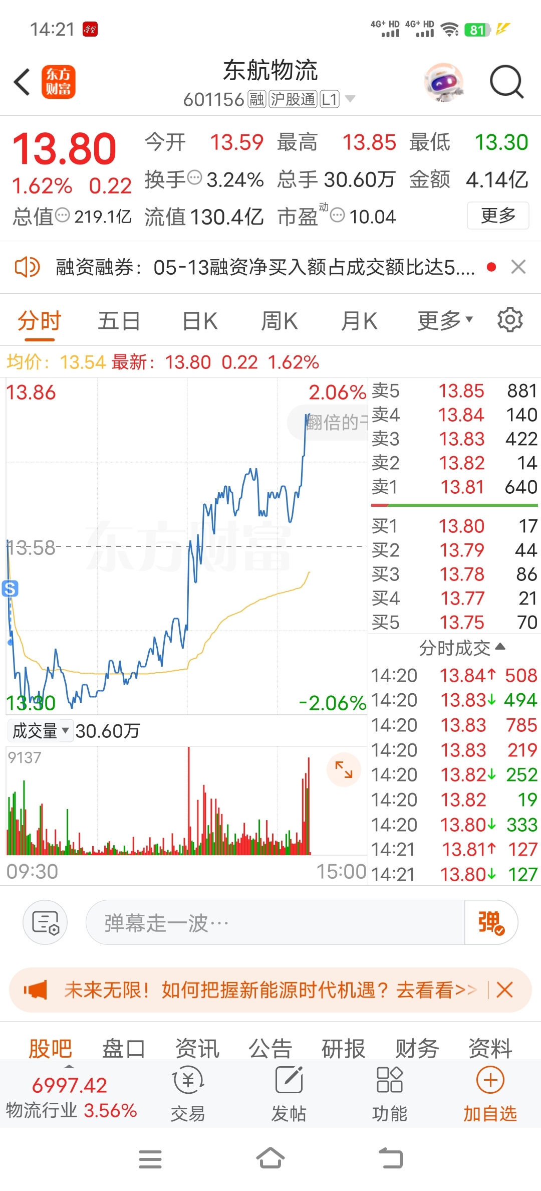 $东航物流(SH601156)$