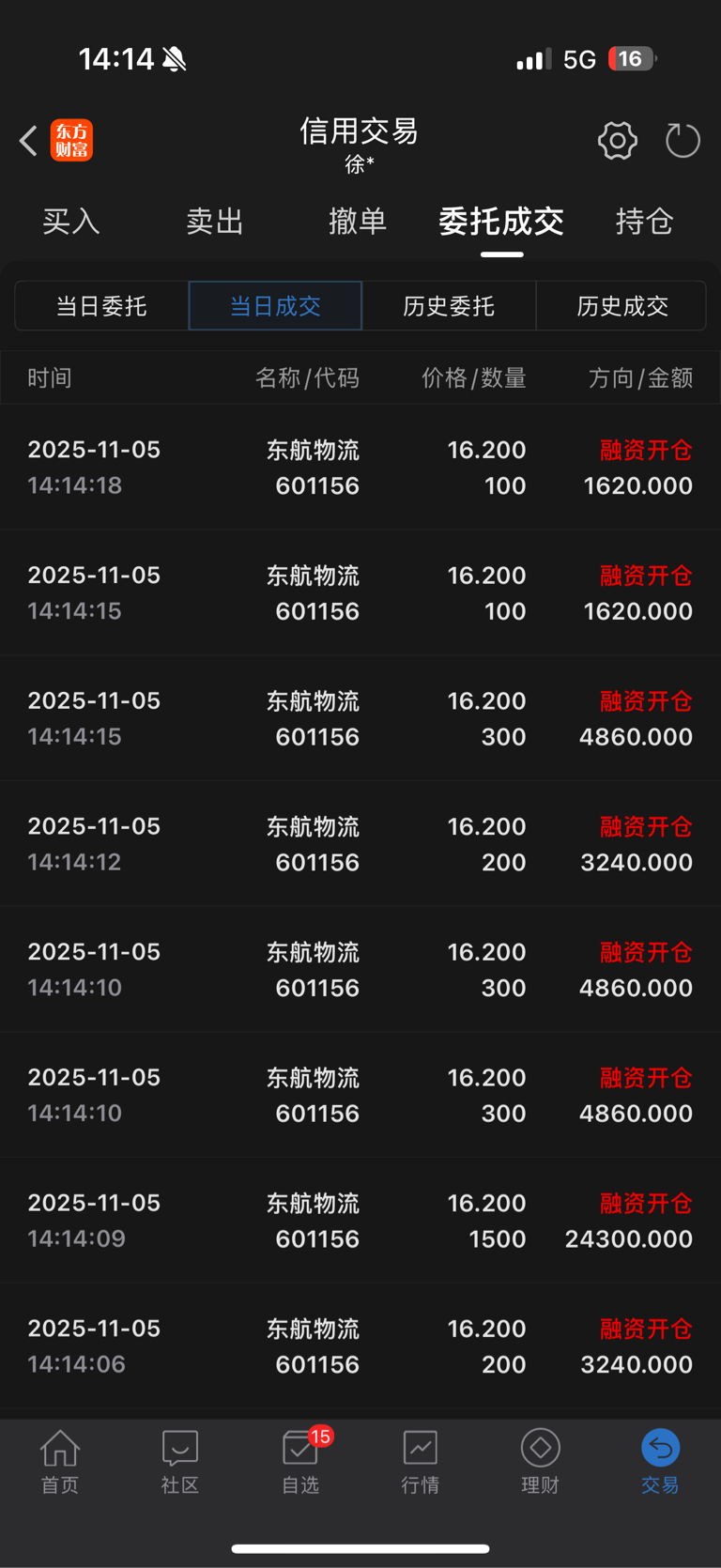 $东航物流(SH601156)$ 真恶心 挂个单 全是1手的成交
