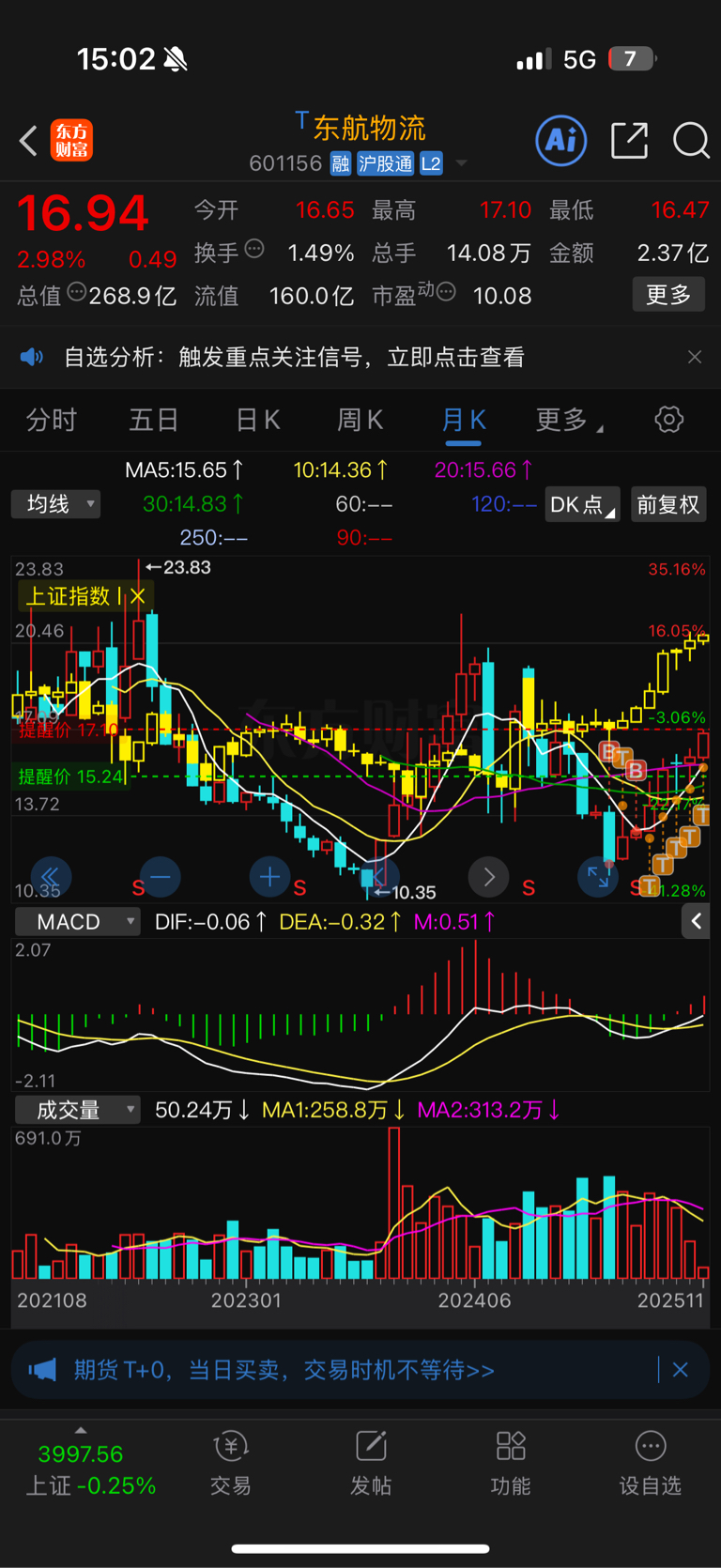 $东航物流(SH601156)$ 月线太美,新高不是毫无疑问的事情吗???