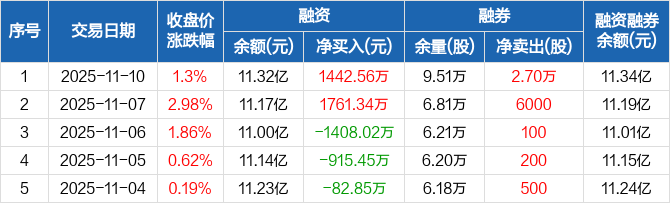 东航物流:融资净买入1442.56万元,融资余额11.32亿元(11-10)
