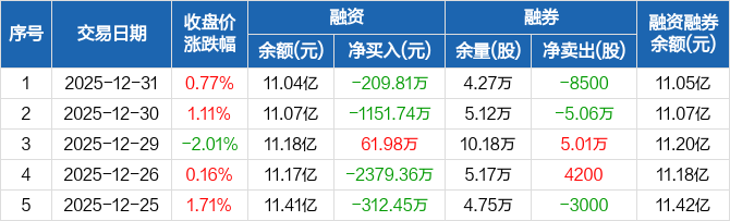 东航物流:融资净偿还209.81万元,融资余额11.04亿元(12-31)
