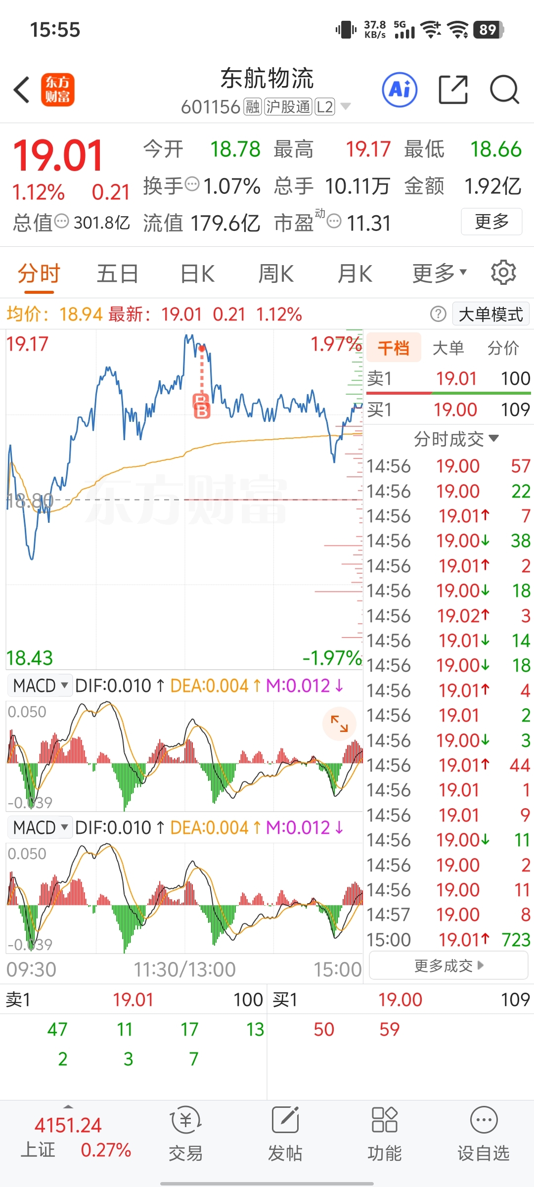 $东航物流(SH601156)$ 挂树上了,各位看到多少