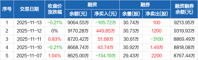 重庆水务:融资净偿还105.72万元,融资余额9064.55万元(11-13)