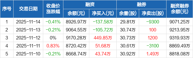 重庆水务:融资净偿还137.58万元,融资余额8926.97万元(11-14)