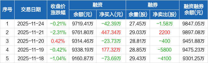 重庆水务:融资净偿还42.39万元,融资余额9719.41万元(11-24)