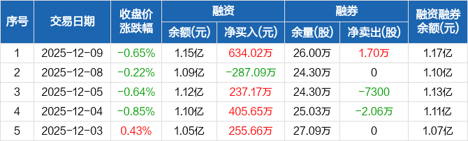 重庆水务:融资净买入634.02万元,融资余额1.15亿元(12-09)