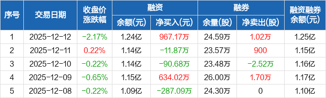 重庆水务:融资净买入967.17万元,融资余额1.24亿元(12-12)