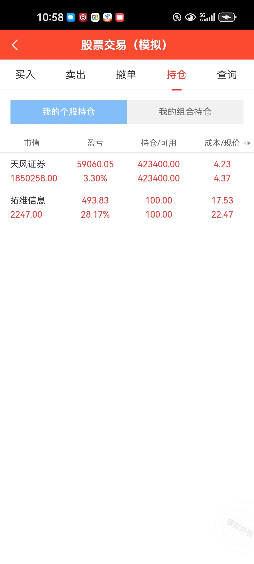 $天风证券(SH601162)$ 模拟盘风生水起。实盘一塌糊涂。