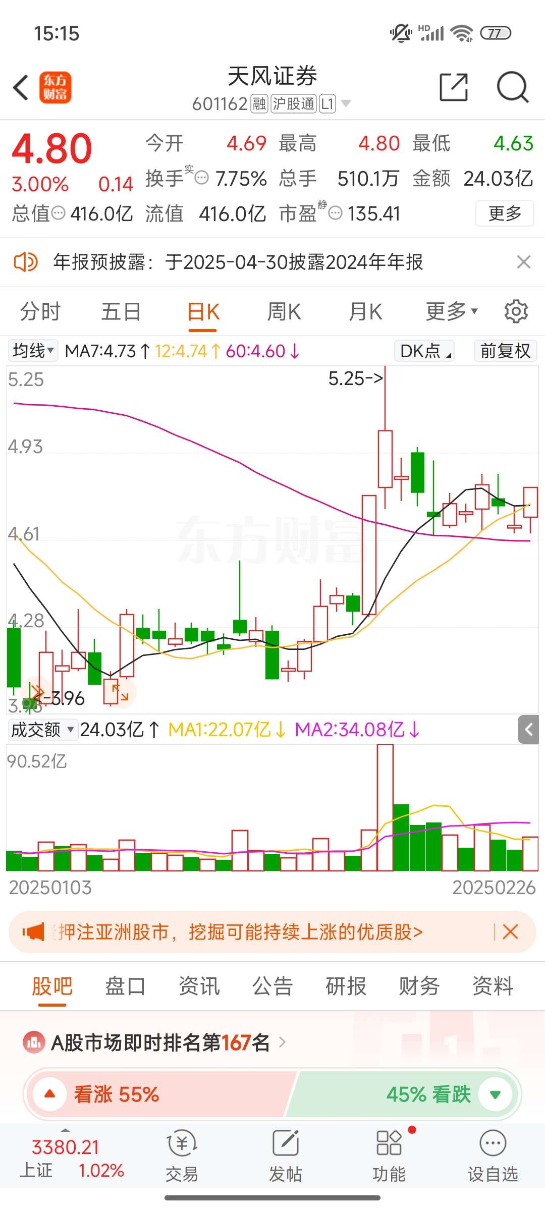 $天风证券(SH601162)$ 今天如果不收平头,大概率还是诱多。平头收盘,明天百分之五的收益保障了。