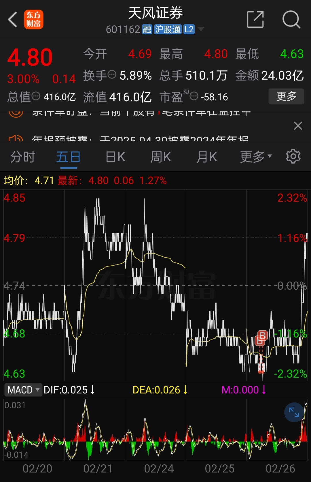 $天风证券(SH601162)$ 4.64进来的,从小就看你骨骼清奇……