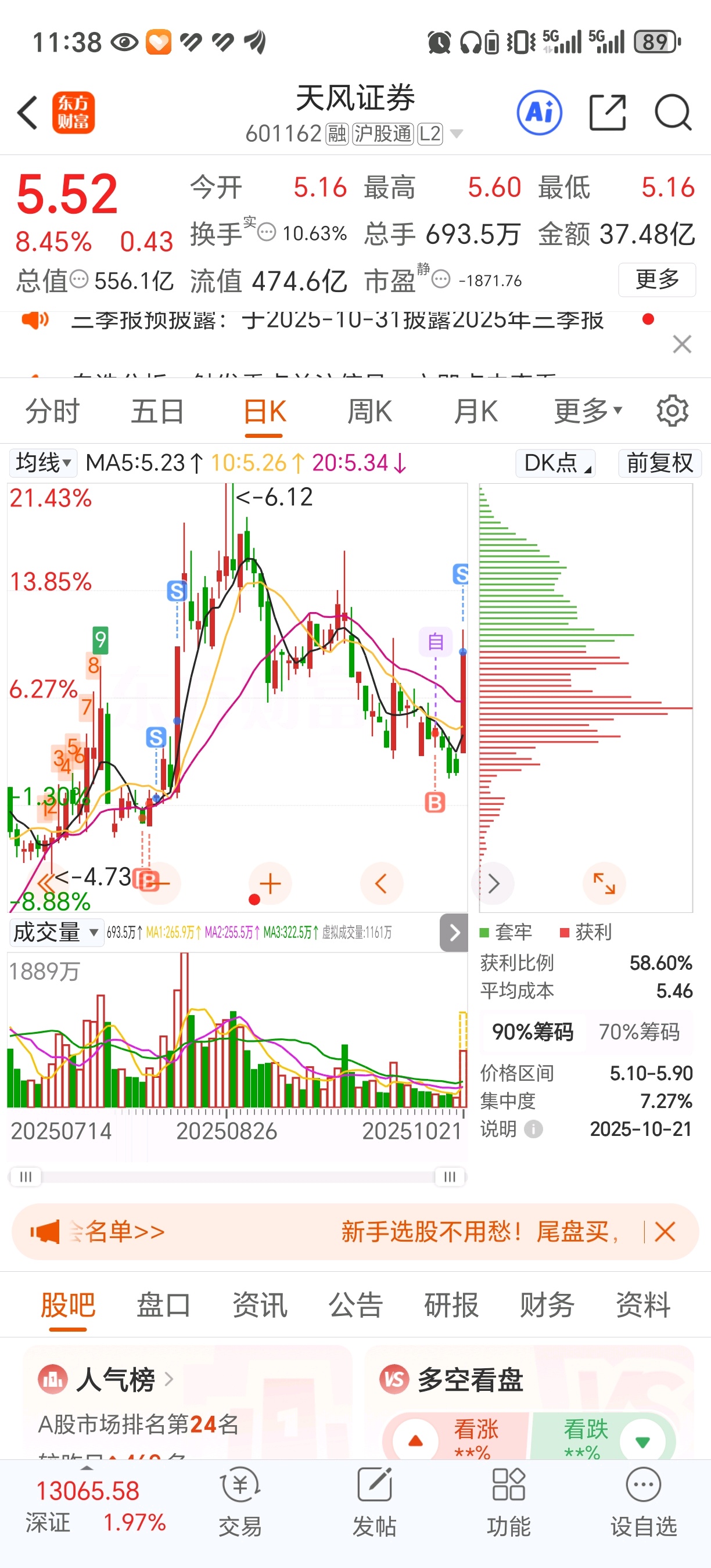 $天风证券(SH601162)$ 这次应该没卖飞吧 呜呜呜