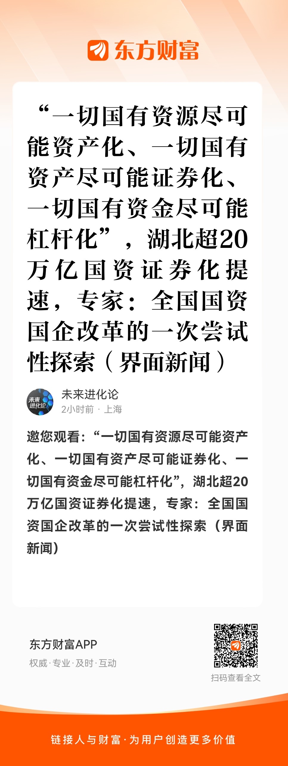 $天风证券(SH601162)$ 湖北超20万亿国资证券化提速,谁在买,谁在卖?半个月后见分晓。