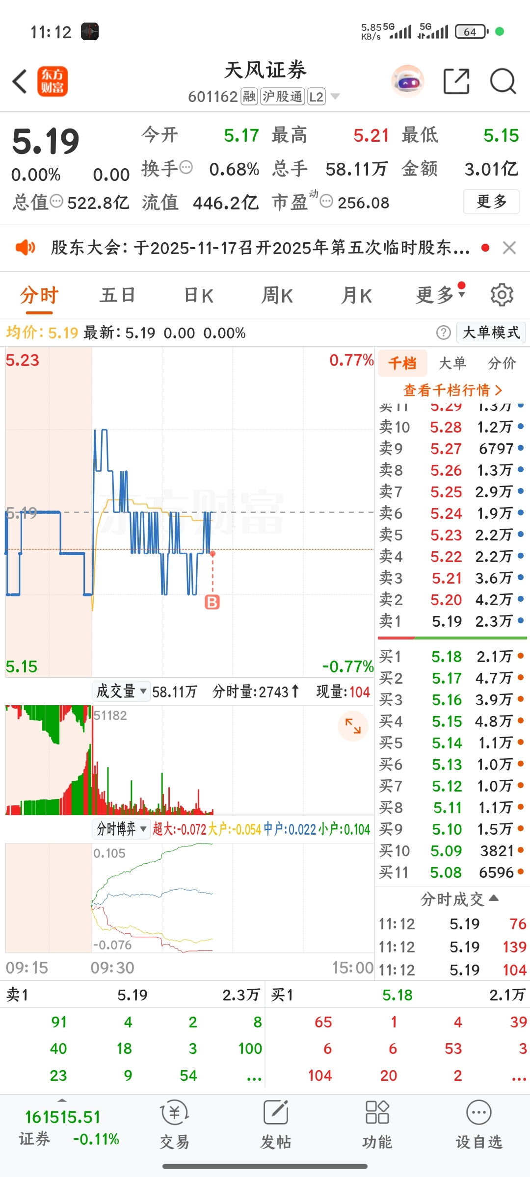 $天风证券(SH601162)$ 今天大盘看你了