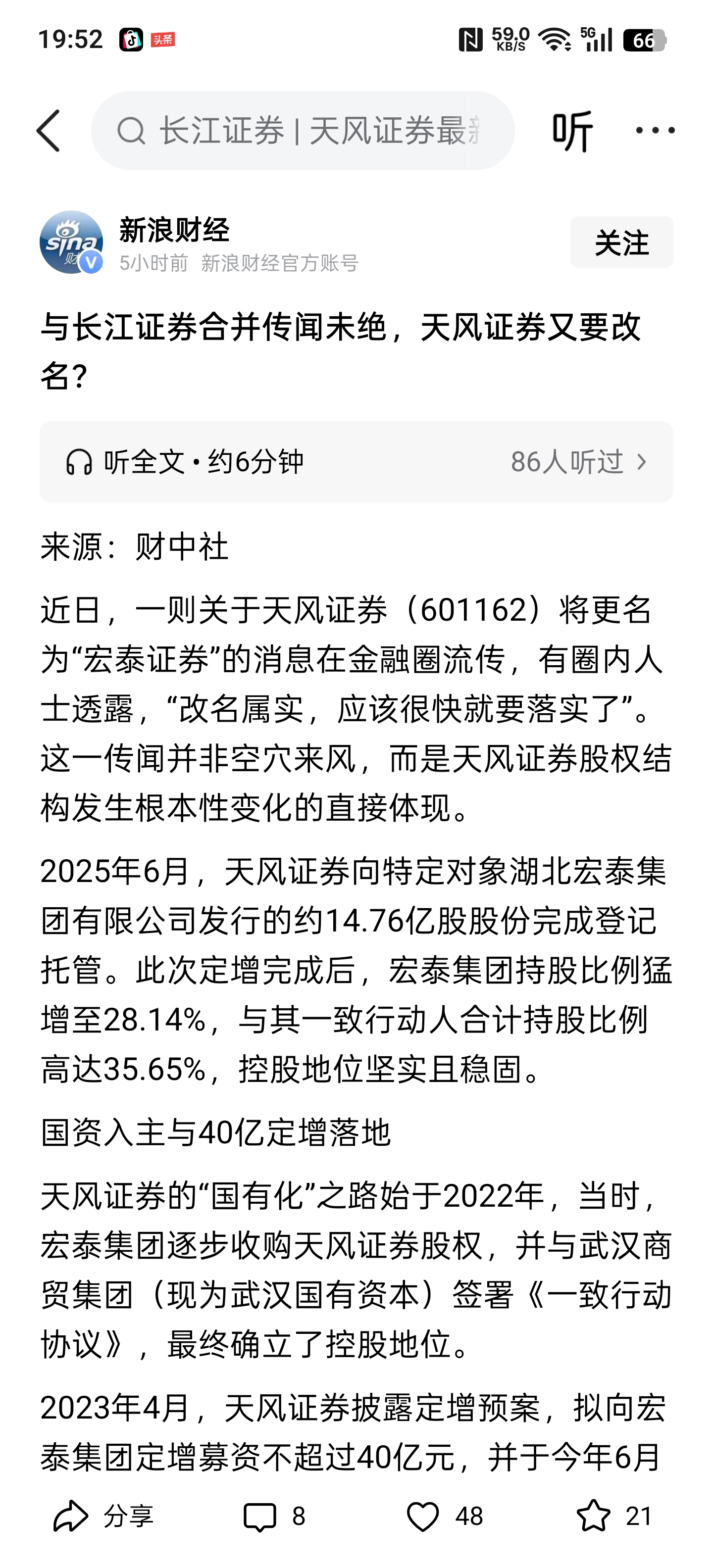 $天风证券(SH601162)$ 真要改名了啊