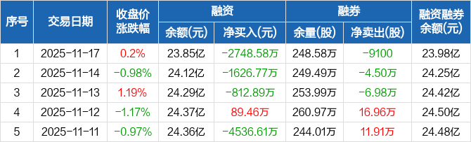天风证券:连续3日融资净偿还累计5188.24万元(11-17)