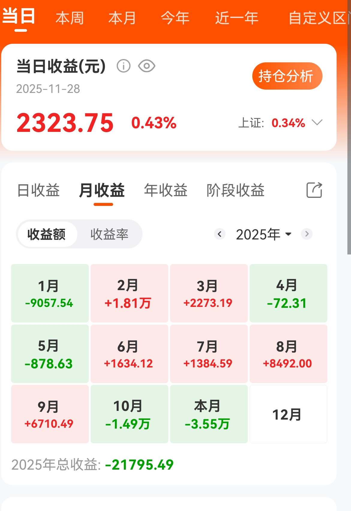 今年还有最后一个月,期望今年能正收益。